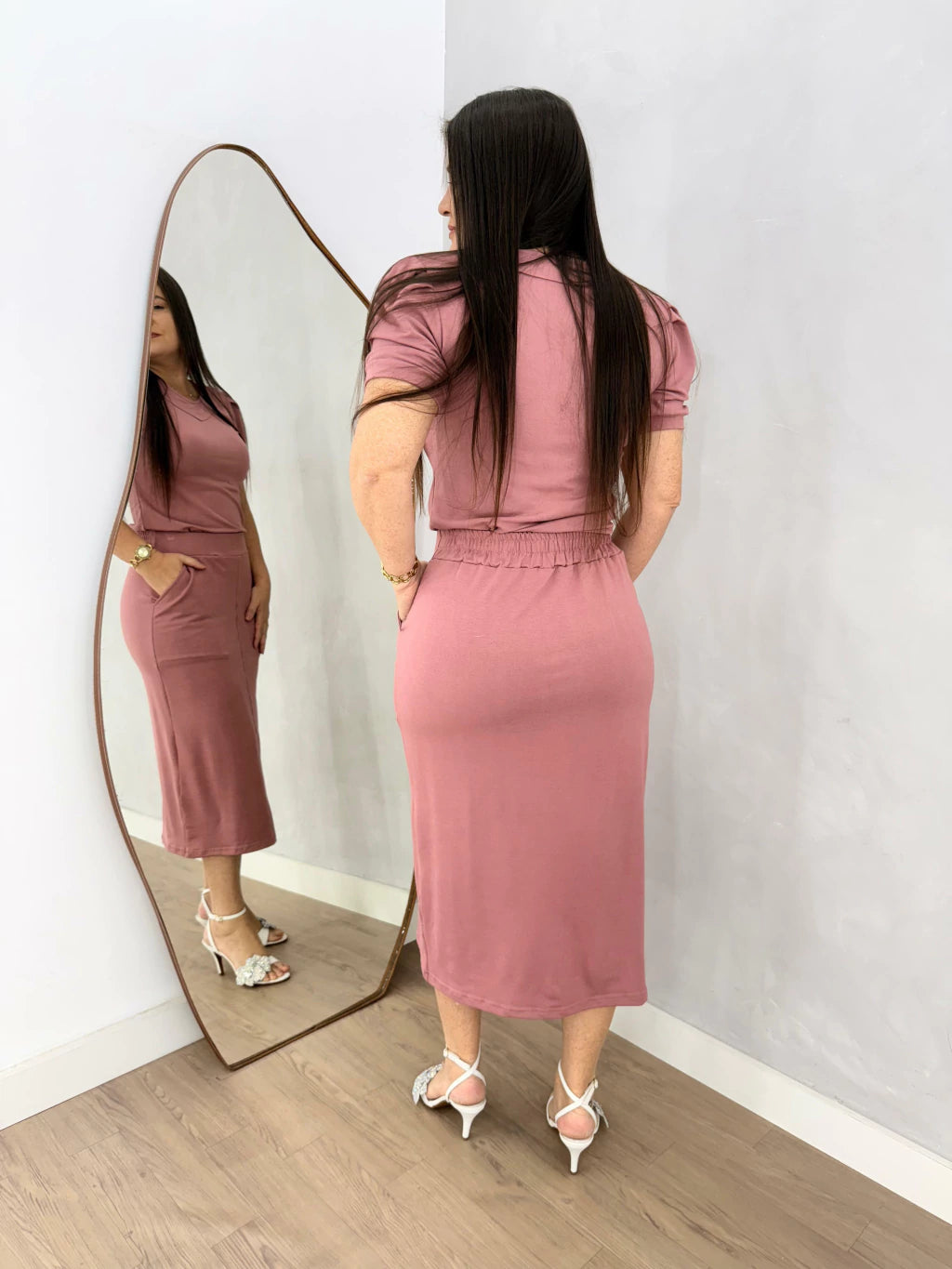 Um conjunto inrresistível de saia e blusa, perfeito para mulheres que buscam elegância e sofisticação em suas roupas. Com um design cuidadosamente elaborado, cada peça é feita para realçar a beleza feminina e proporcionar um visual encantador.