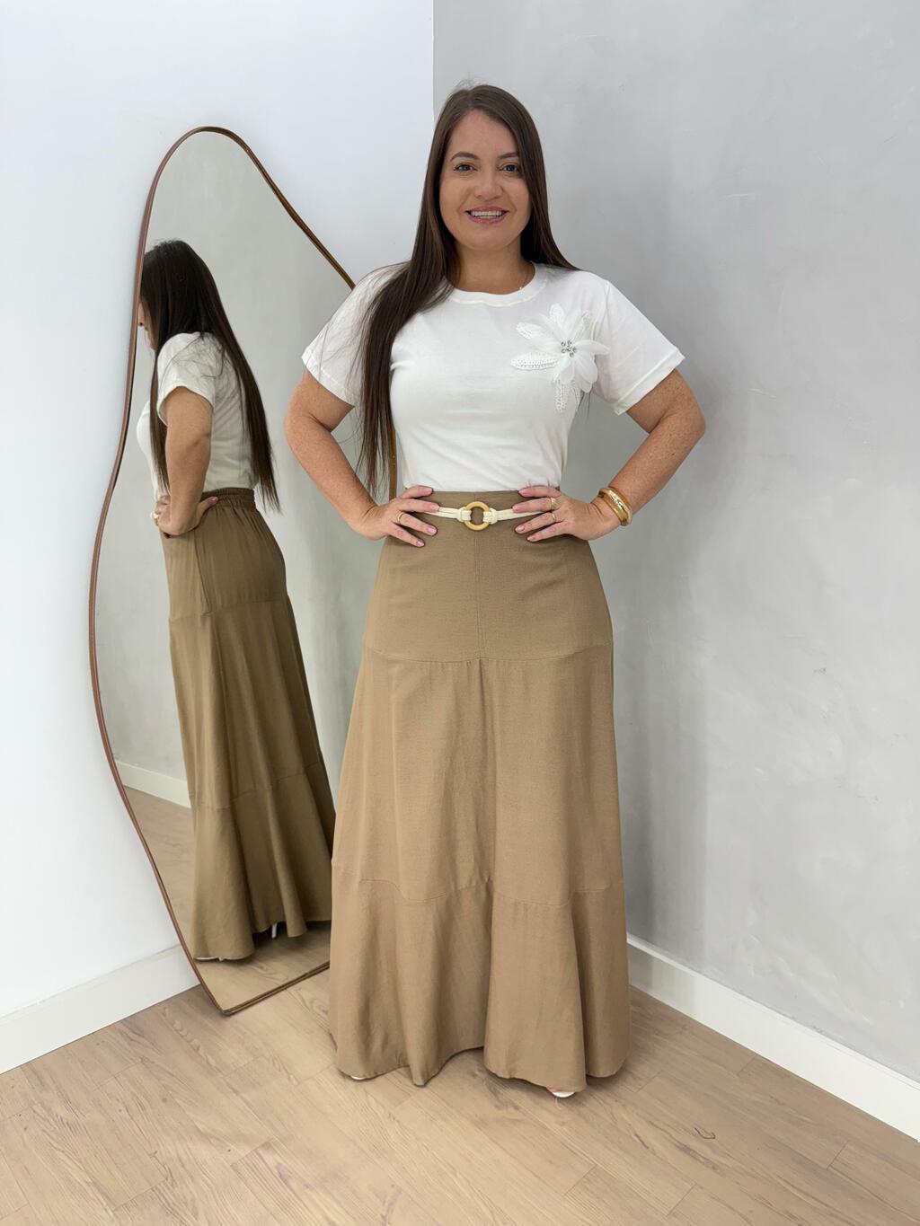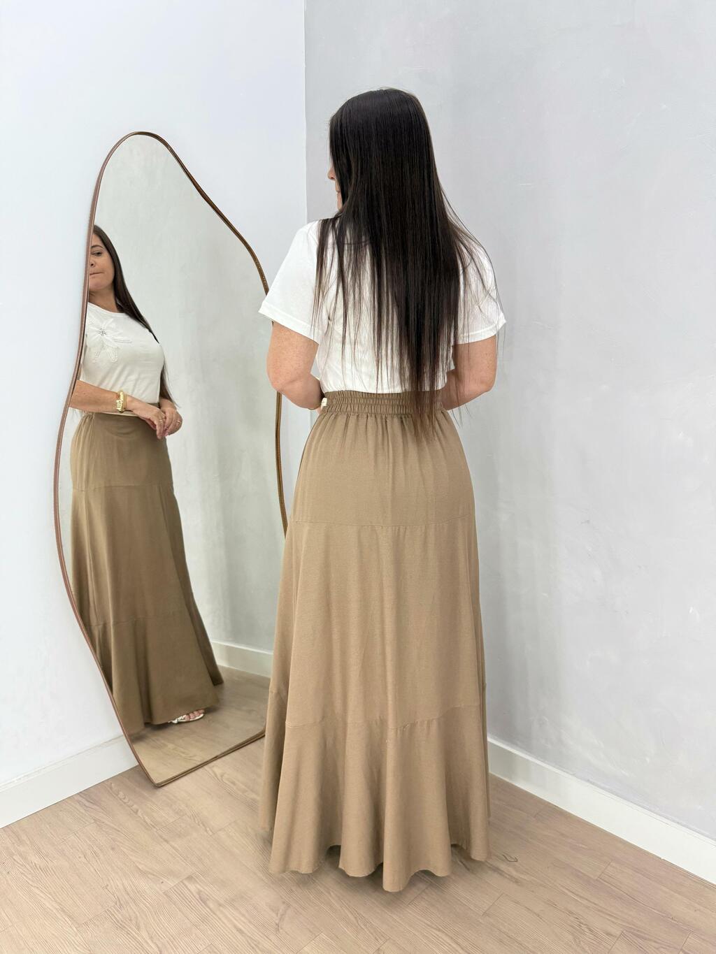 A saia Lara é a personificação da elegância e sofisticação. Modelo longo, elástico na cintura somente atrás. Essa saia é perfeita para mulheres que buscam um vizual refinado e impecável. Possuindo um toque de glamour e requinte, ela conta também com um corte impecável e caimento perfeito, sendo a escolha ideal para mulheres que deseja se destacar e apreciam elegancia e estilo em suas produções.